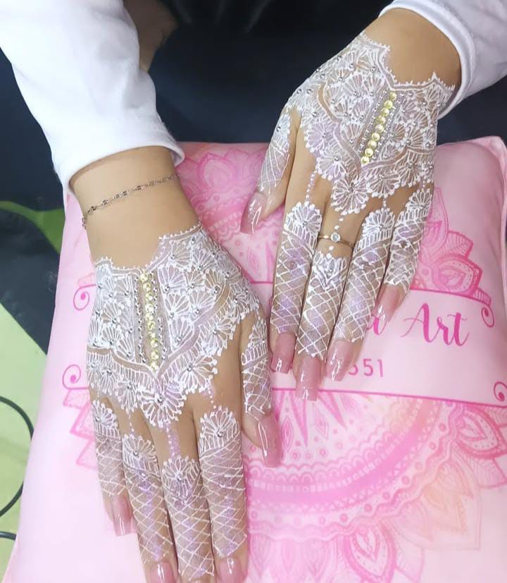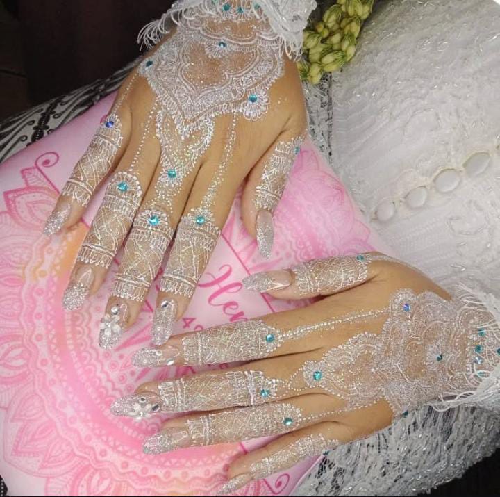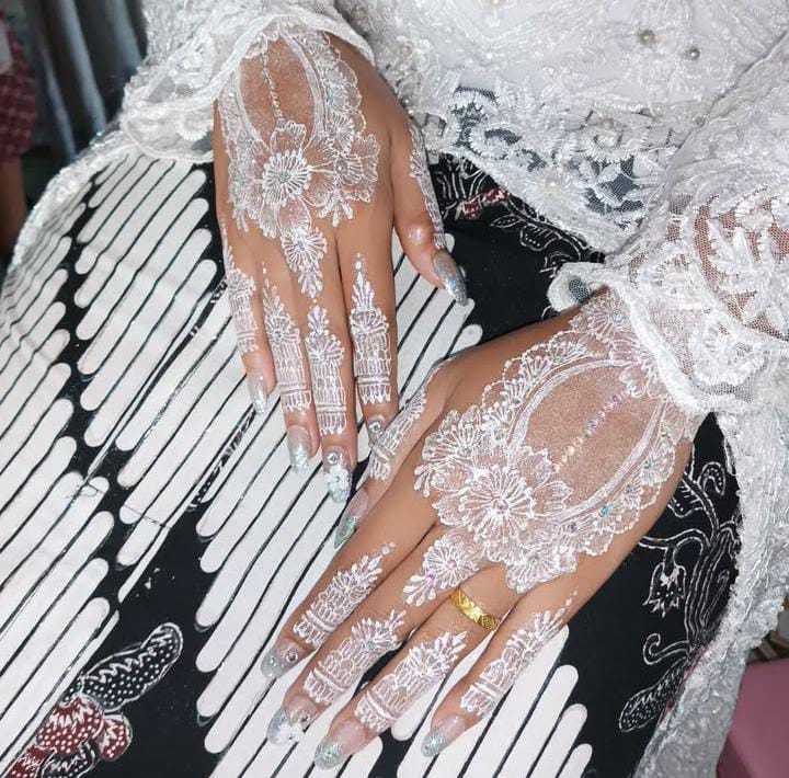 Henna khusus pengantin dengan desain mewah dan penuh detail. Harga: Rp300.000